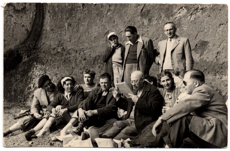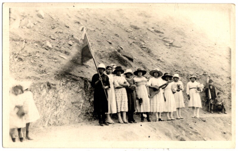 [Personas en las faldas de un cerro] [fotografía].
