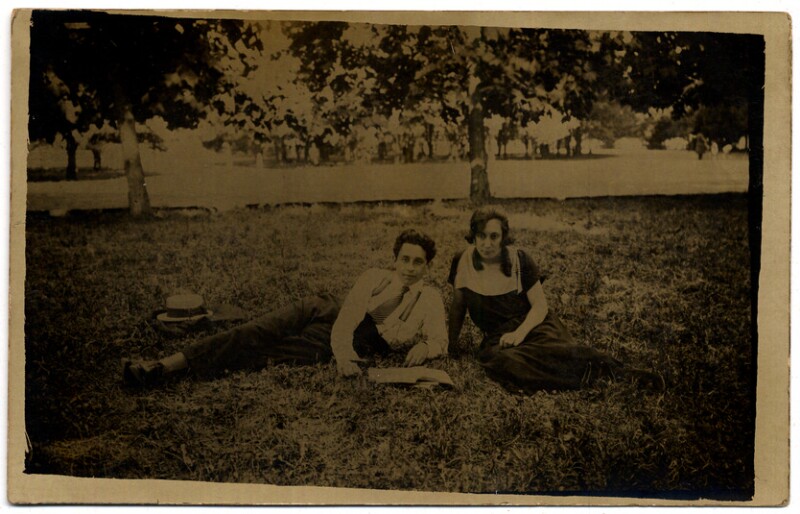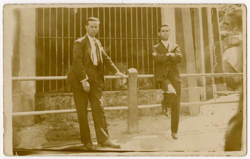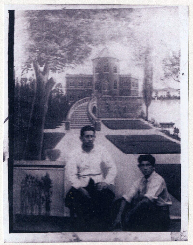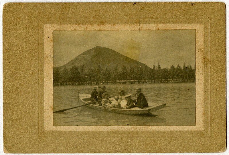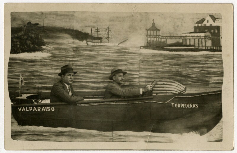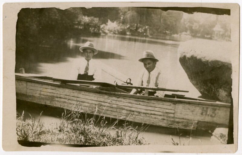 [Dos hombres en bote en la laguna de la Quinta Normal] [fotografía].