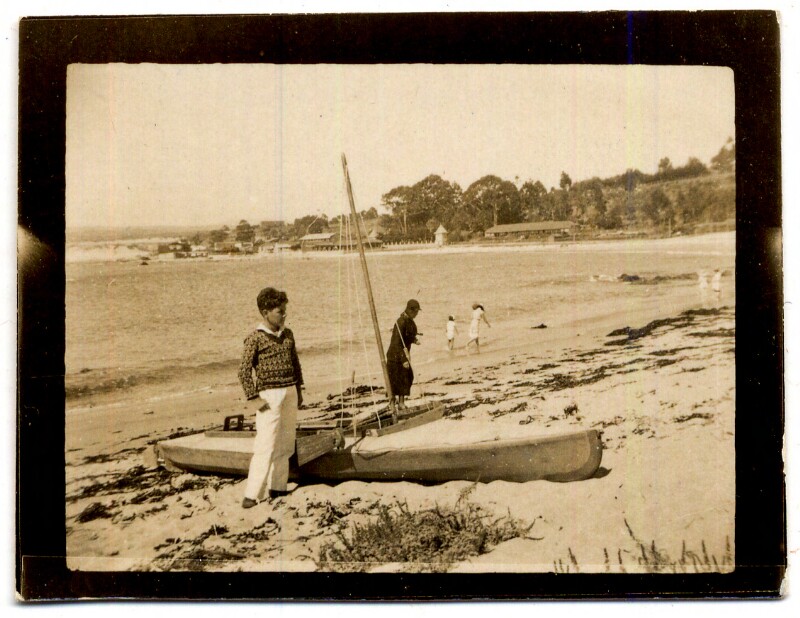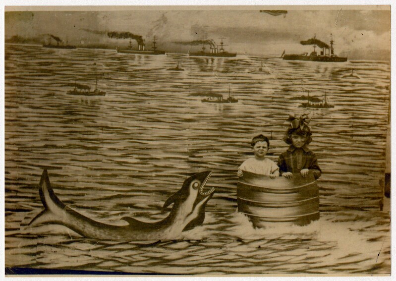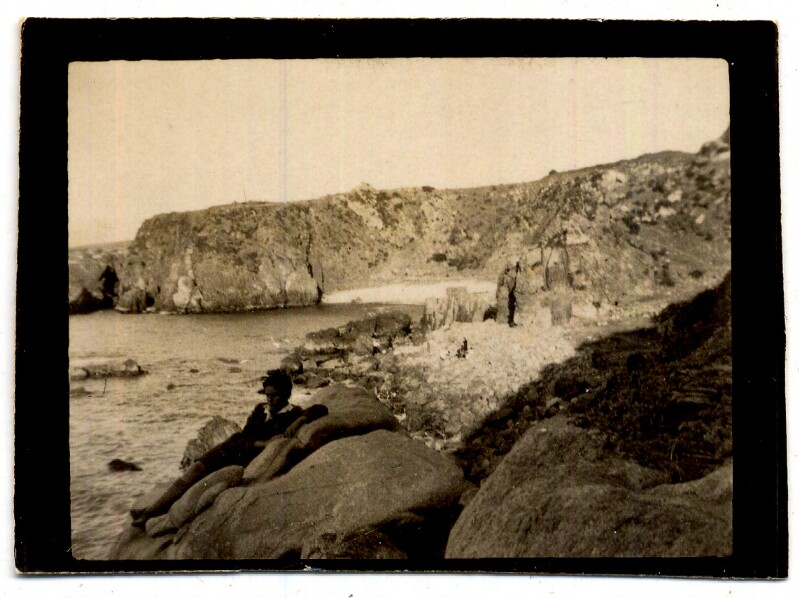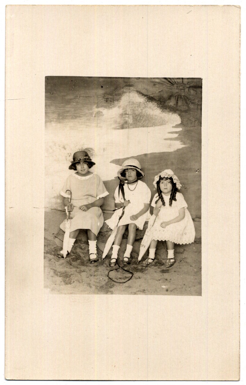 [Niños en paisaje marino de telón de fondo] [fotografía].