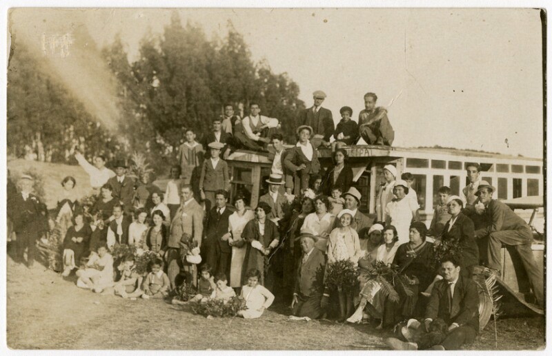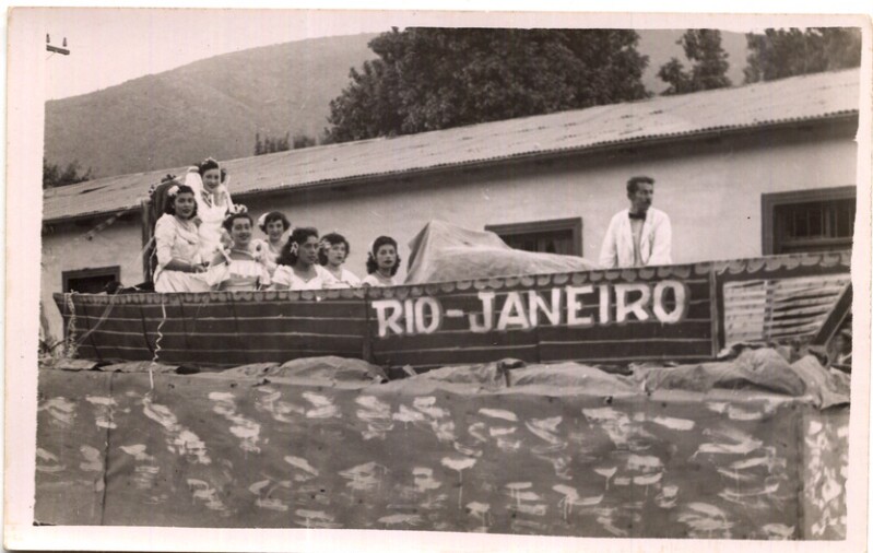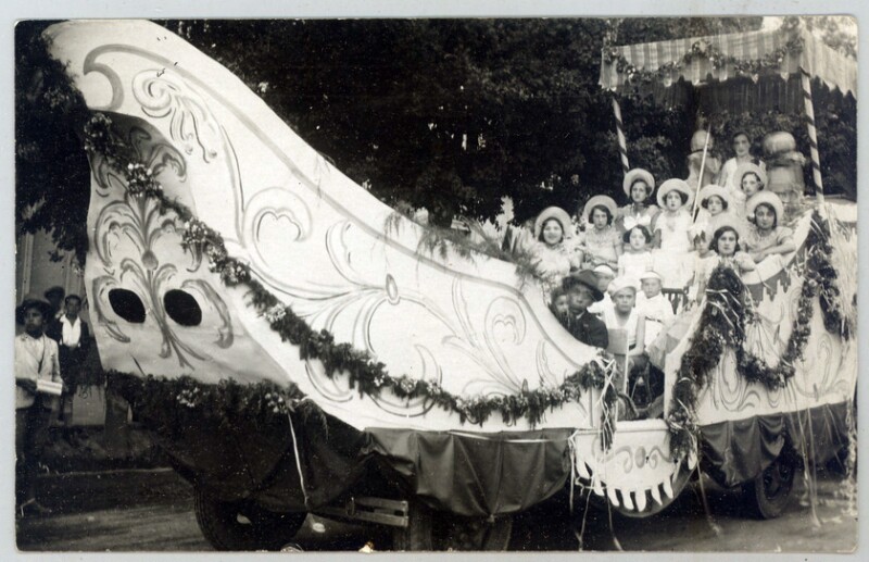[Personas al interior de un carro alegórico] [fotografía].