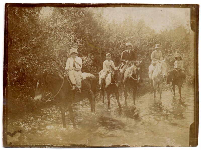 [Familia cabalgando en zona rural] [fotografía].