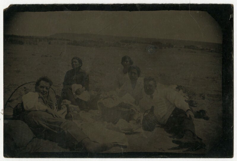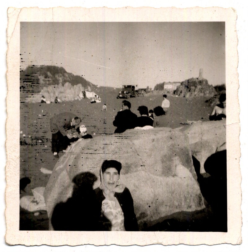 [Familia almorzando al lado de roquerío en balneario de Pichilemu] [fotografía].
