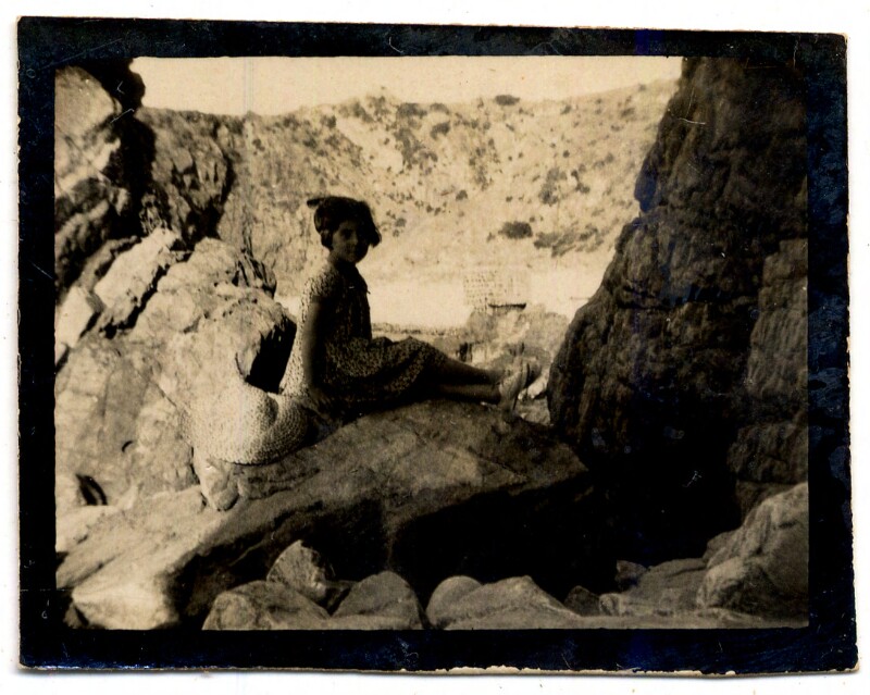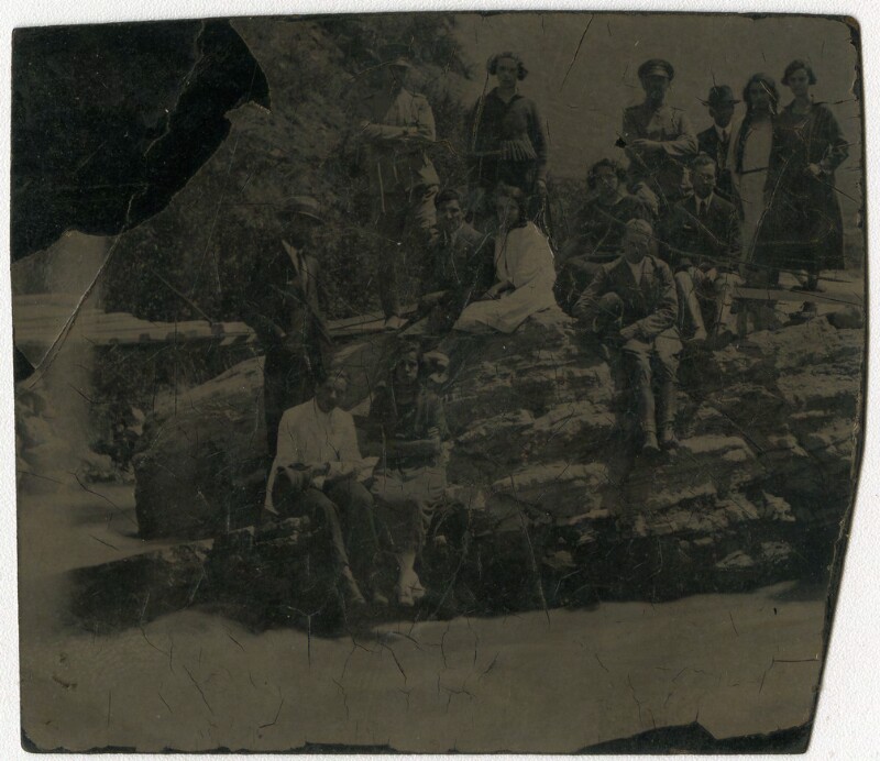[Personas sobre montículo rocoso] [fotografía].