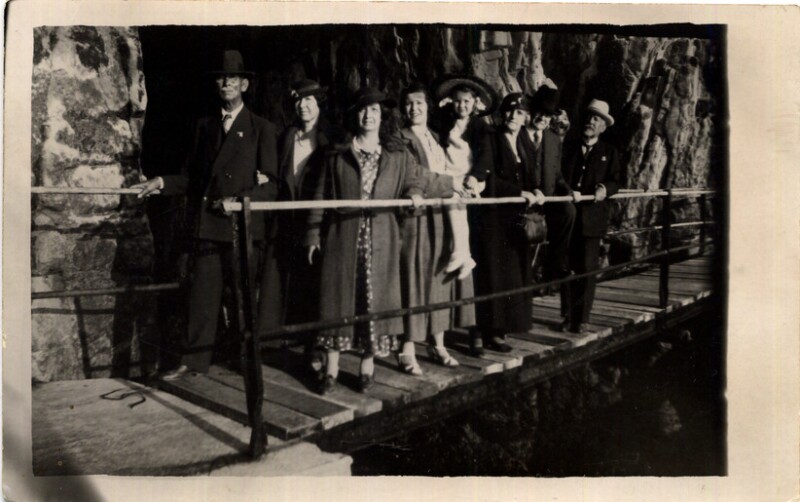 [Personas en puente de madera] [fotografía].