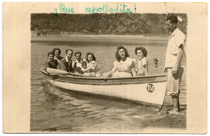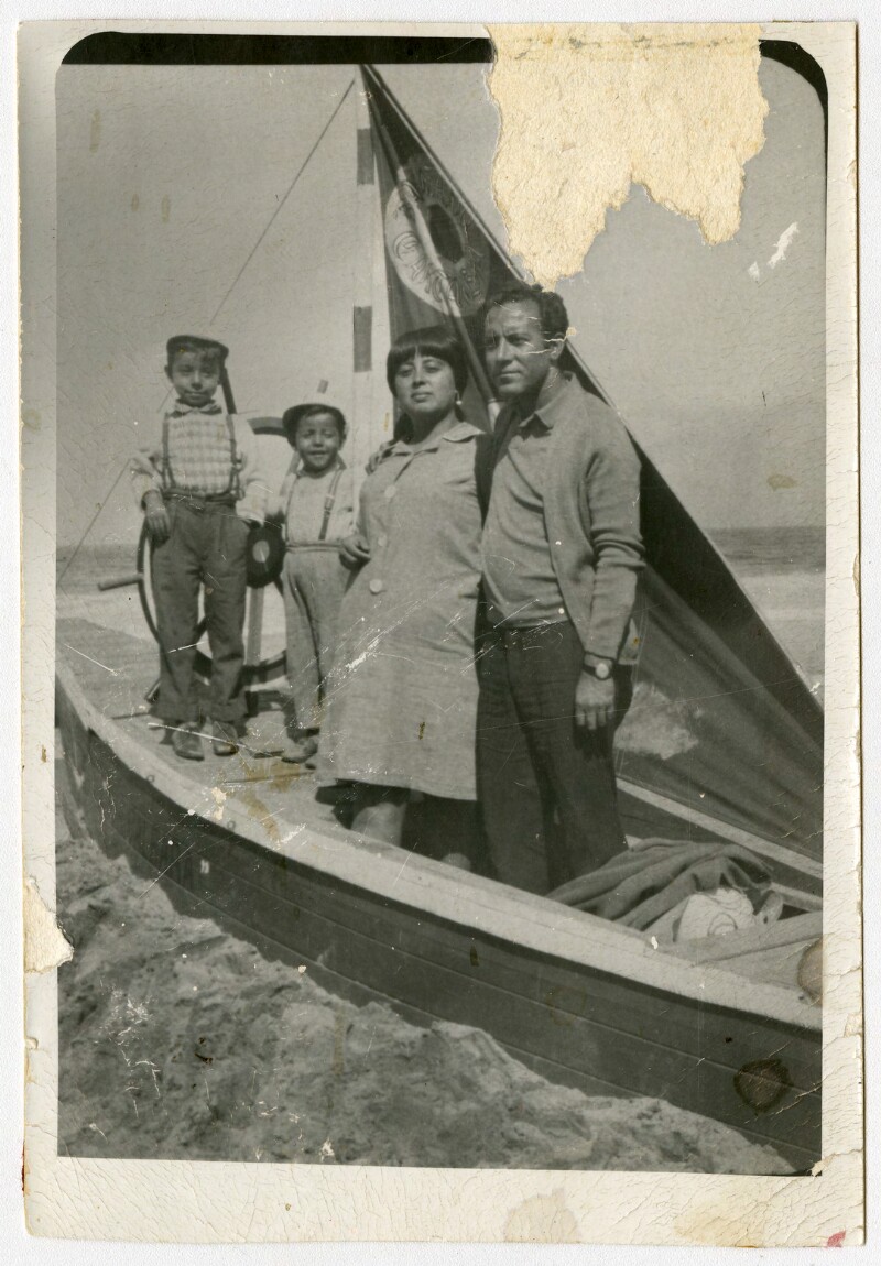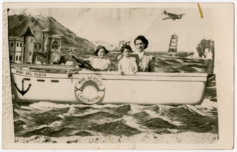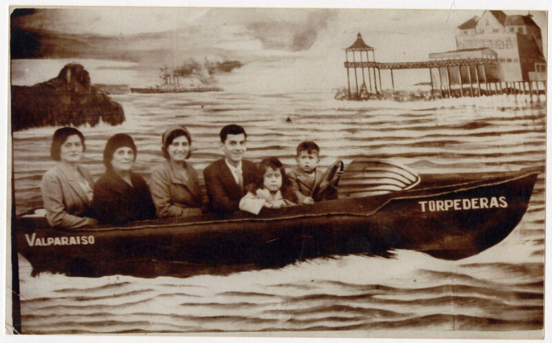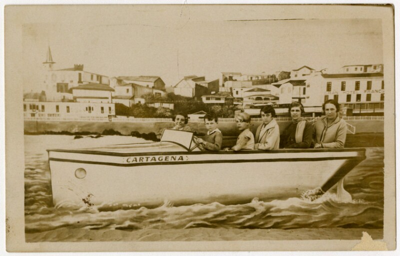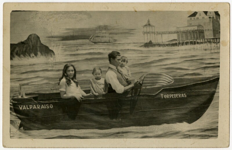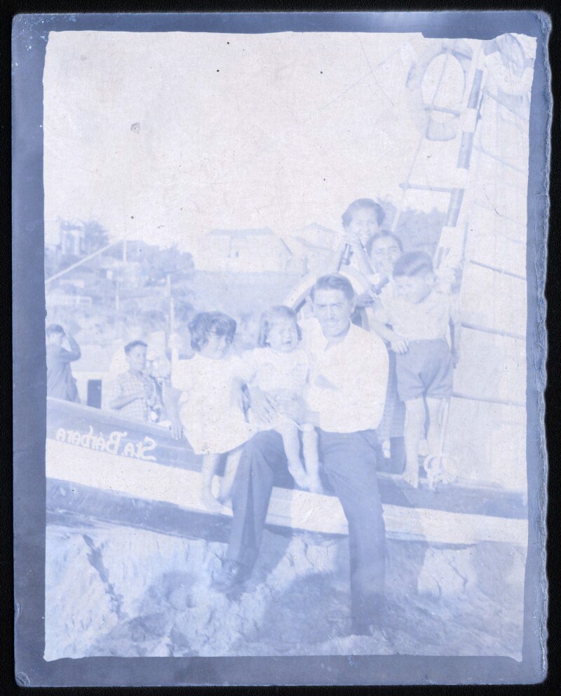 [Familia al interior de bote Sta. Barbara] [fotografía].