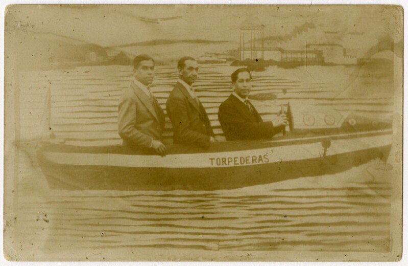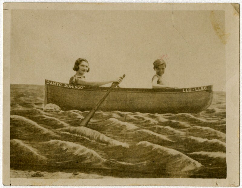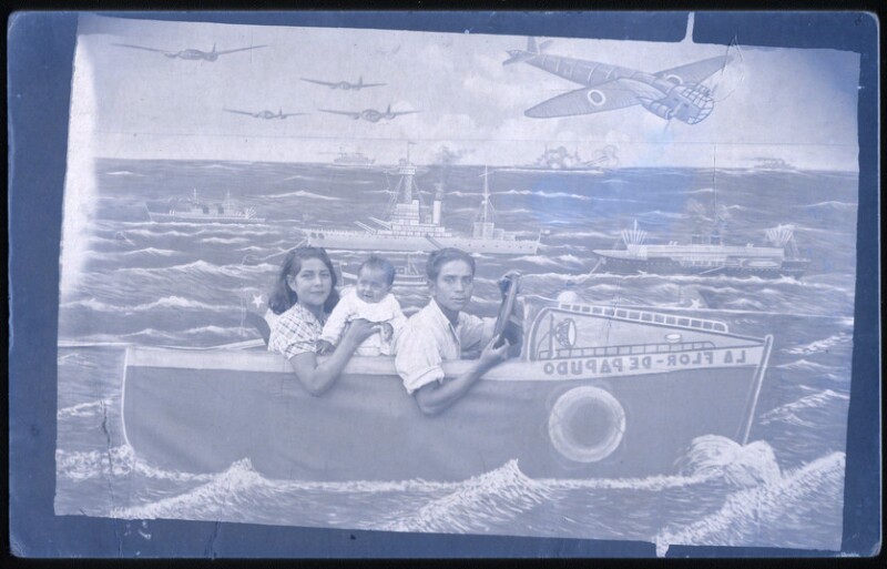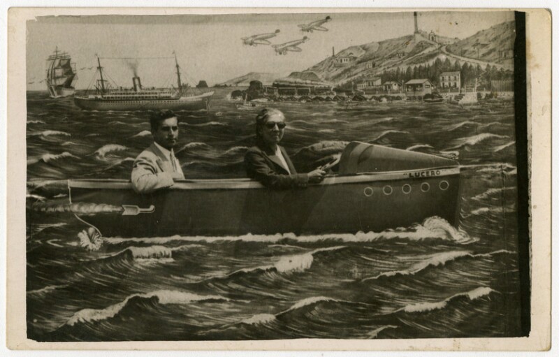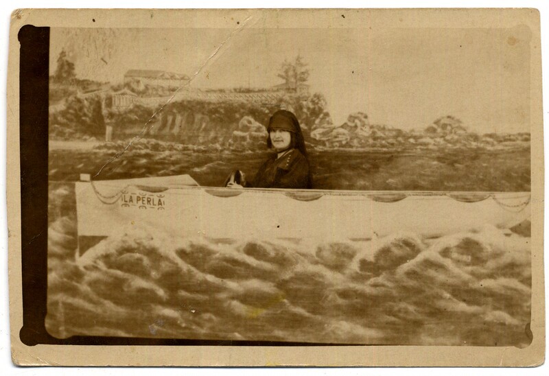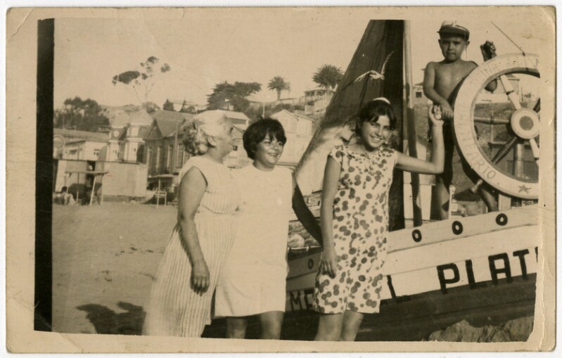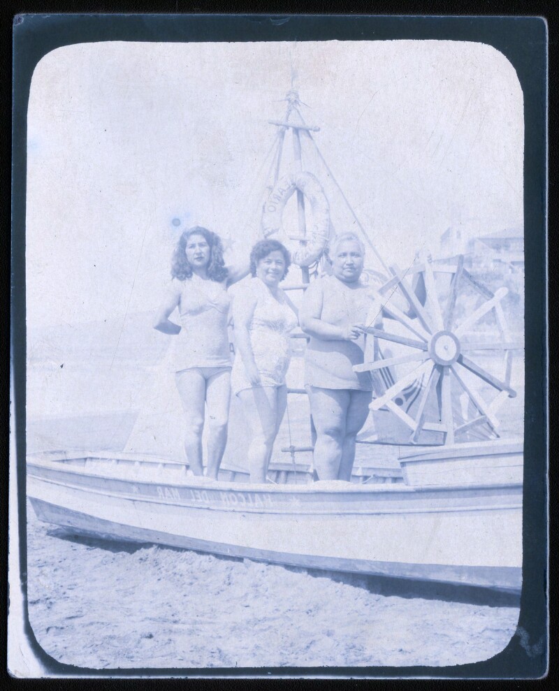 [Familia al interior de bote Sta. Barbara] [fotografía].