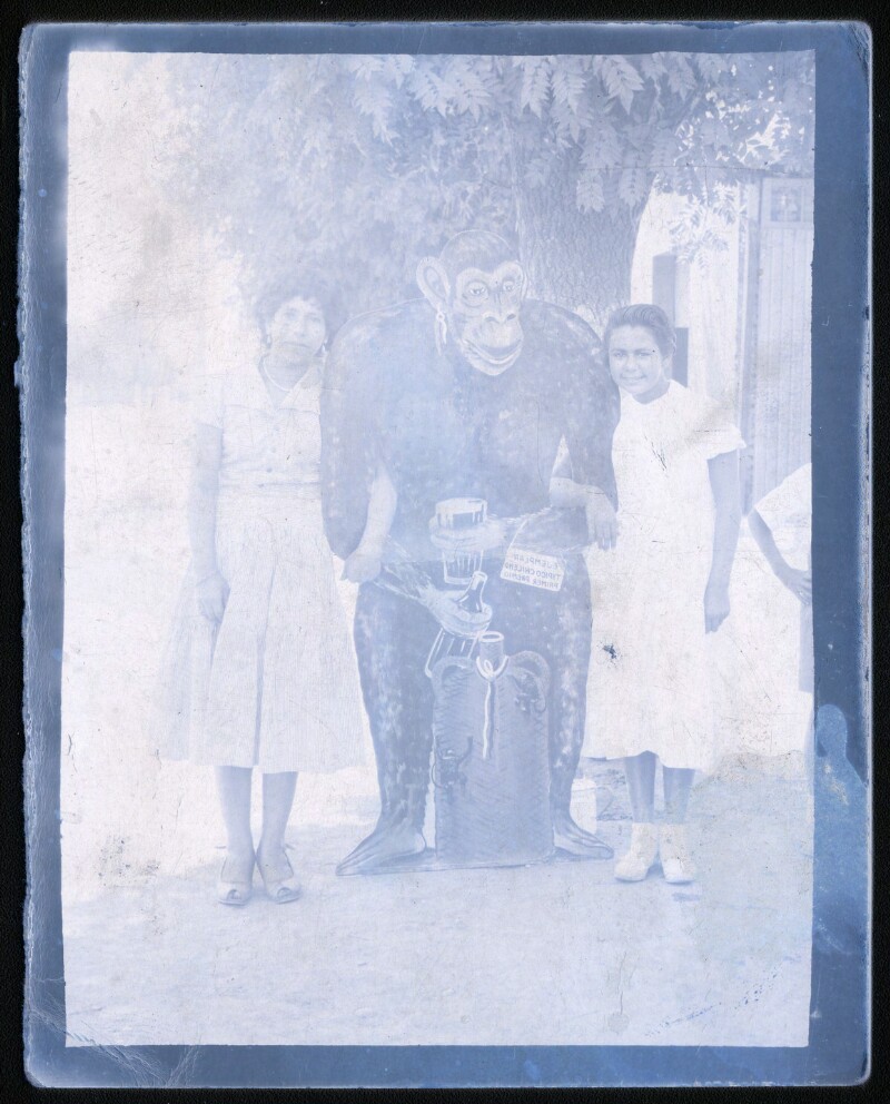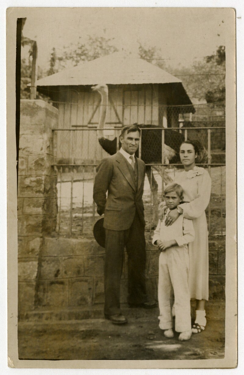 [Familia delante de jaula de avestruz] [fotografía].