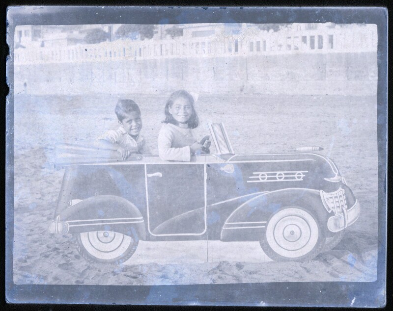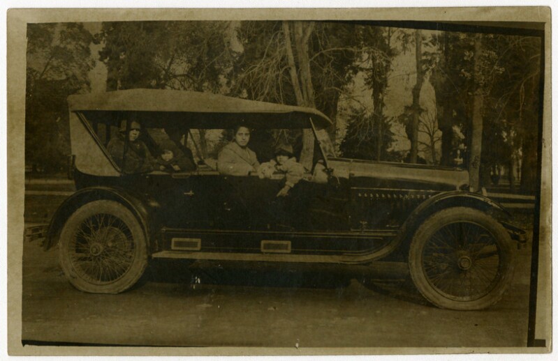 [Personas al interior de un automóvil de turismo] [fotografía].