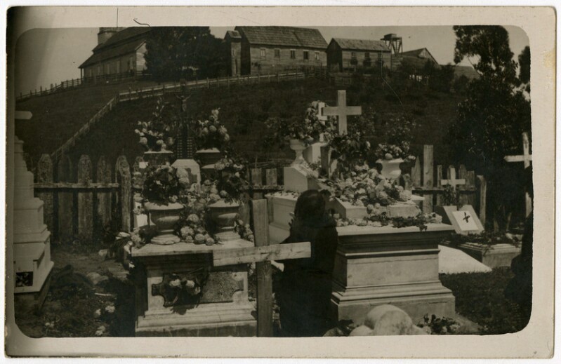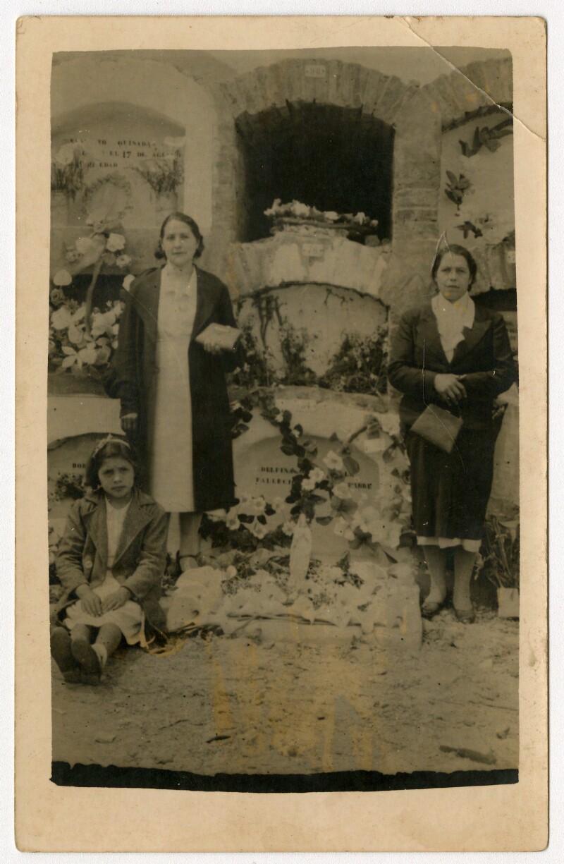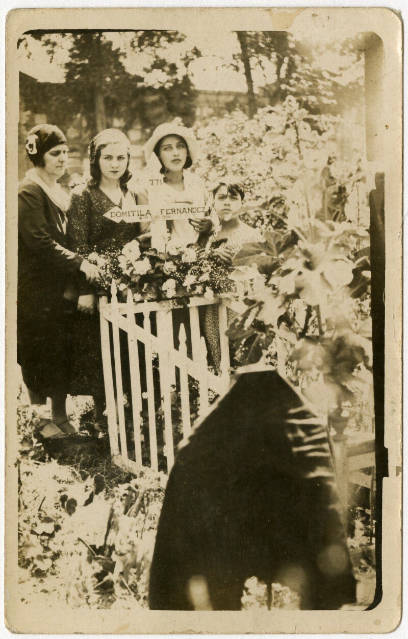 [Familia alrededor de una tumba en cementerio] [fotografía].