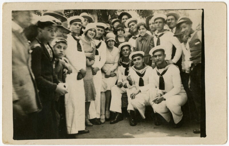 [Civiles junto a Marinos del "Sebastián Elcano"] [fotografía].
