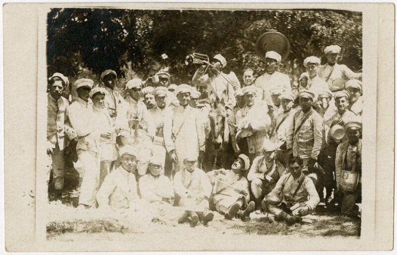 [Uniformados con instrumentos musicales] [fotografía].