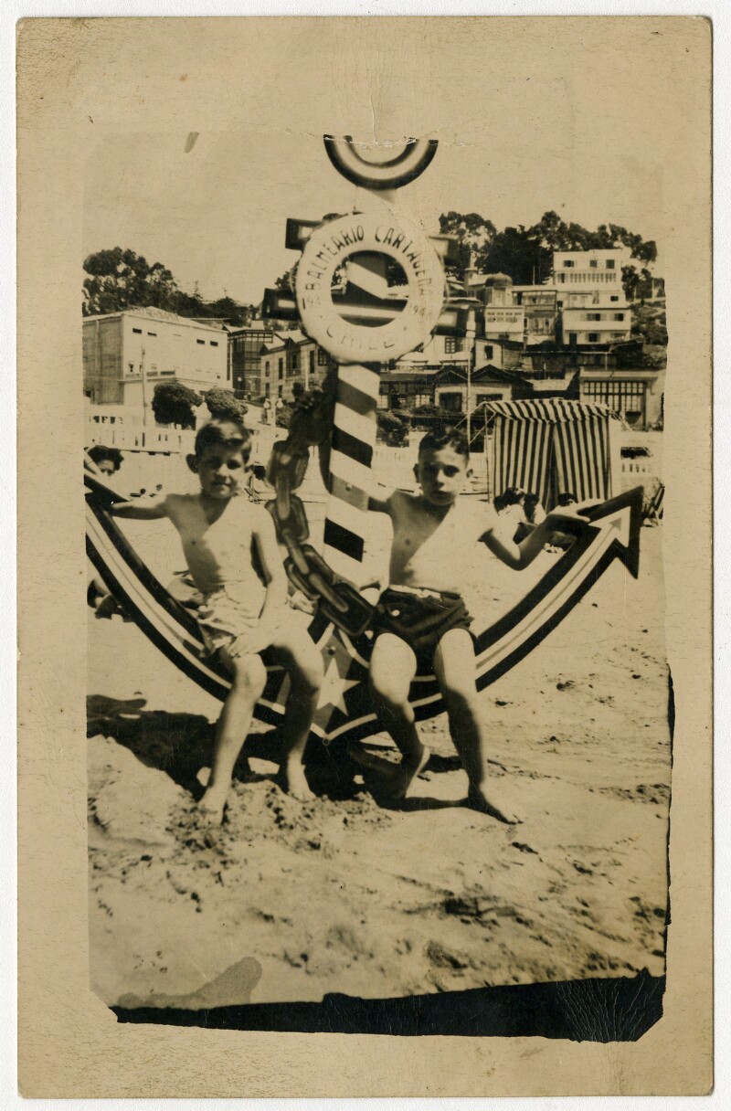 [Niños sobre imitación de ancla en balneario de Cartagena] [fotografía].