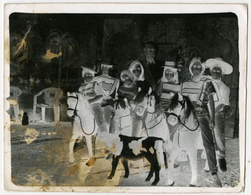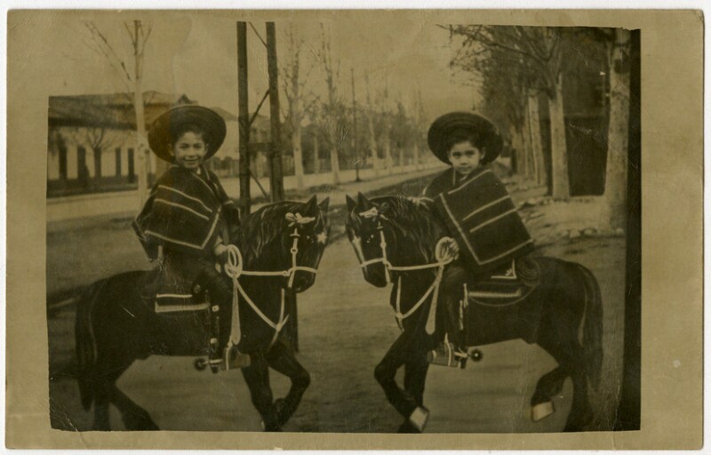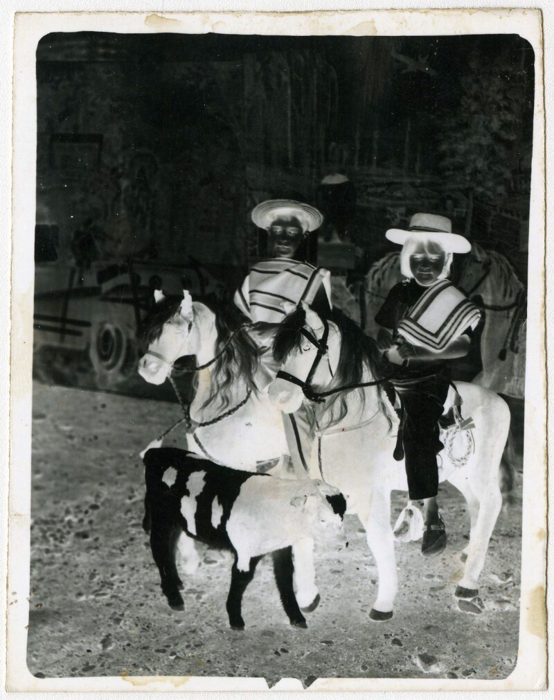[Niños sobre ponis de utilería] [fotografía].