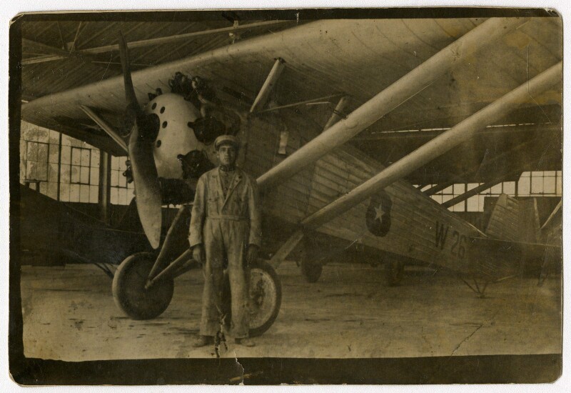 [Obrero debajo de una avioneta] [fotografía].