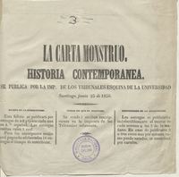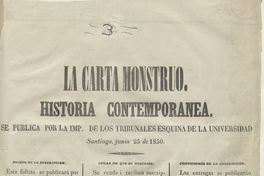 La Carta monstruo, o, Historia contemporanea. Santiago : Imprenta de los Tribunales, 1850-1851. 1 volumen ; 28 cm. .