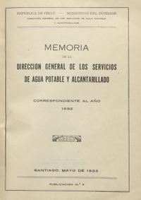 Memoria. Santiago : Dirección General de Agua Potable y Alcantarillado, 1932-1949 (Santiago : Imprenta Universo) volúmenes ; 25 cm. .