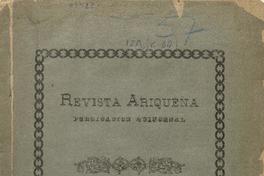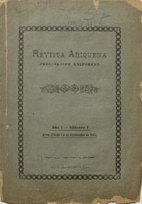 Revista ariqueña Arica : [s.n] , 1923-1924 (Arica: Impr. La Aurora) 9 números : 27 cm. .