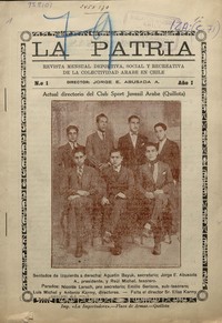 La Patria. Quillota : Colectividad Arabe en Chile, 1931-1932 (Quillota : Impr. La Importadora) 6 números ; 26 cm. .