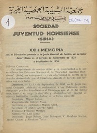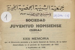 Memoria. Santiago : Sociedad Juventud Homsiense Siria (Santiago : Imprenta Litográfica Leblanc) volúmenes ; 18 cm. .