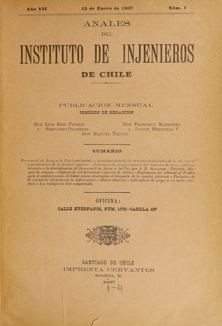 Anales del Instituto de Injenieros de Chile.