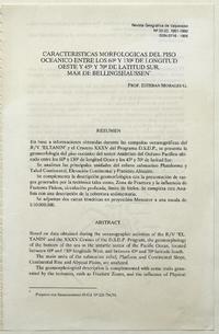Características morfolóficas del piso oceánico entre los 60° y 130° de longitud oeste y 45° y 70° de latitud sur. Mar de Bellingshausen [artículo] / prof. Esteban Morales G. Revista Geográfica de Valparaíso. -- Números 22-23 (1991-1992), páginas [225]-239. 15 páginas : 2 mapas en color ; 28 cm. .