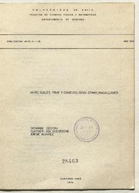 Anticlinales Prat y Canelos, Seno Otway, Magallanes / Giovanni Cecioni, Gunther von Goetsche [y] Jorge Alvarez. Santiago, Chile : Universidad de Chile, Departamento de Geología, 1974. páginas 1-18 ; 26 cm + 4 mapas (en 16 partes) .