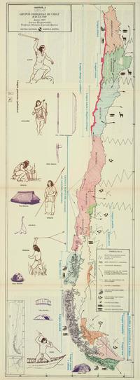 Grupos índigenas de Chile hacia 1540 [material cartográfico] / asesor responsable profesor Horacio Larraín Barros. [Santiago] : Editora Nacional Gabriela Mistral, junio 1975. 1 mapa : color ; 98 x 37 cm. .
