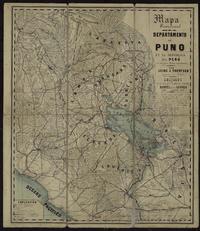 Mapa provisional del Departamento de Puno en la República del Perú con una parte de los colindantes [material cartográfico] / por Jaime J. Thompson. Lima : Litag. de J. Jullia y Cia., 1863. 1 mapa en tela : col. ; 35 x 31 cm. .