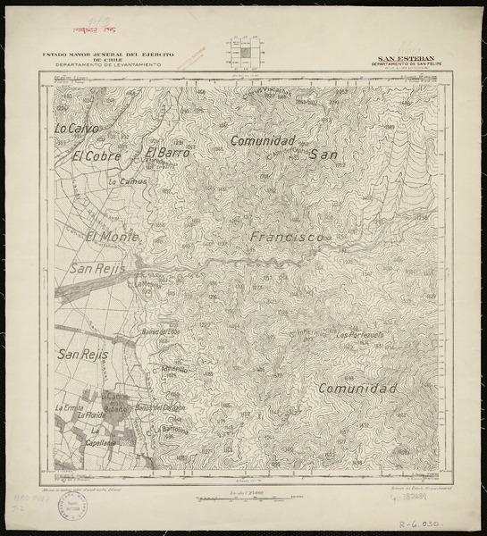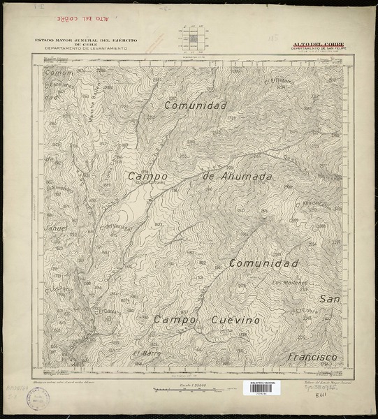 Alto del Cobre Departamento de San Felipe [material cartográfico] : Estado Mayor Jeneral del Ejército de Chile, Departamento de Levantamiento.