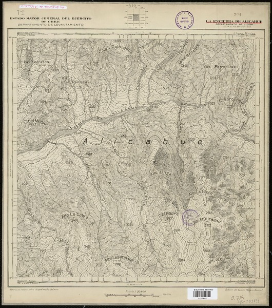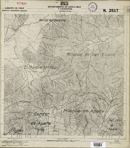 Apalta Departamento de Santa Cruz y Cachapoal [material cartográfico] : Ejército de Chile, Instituto Geográfico Militar.