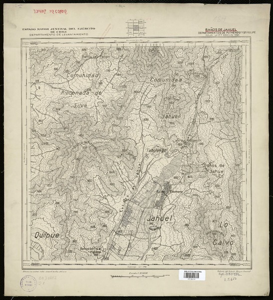 Baños de Jahuel Departamento de Putaendo y Sn. Felipe [material cartográfico] : Estado Mayor Jeneral del Ejército de Chile, Departamento de Levantamiento.