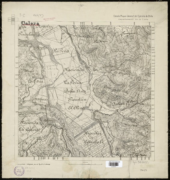 Calera [material cartográfico] Estado Mayor Jeneral del Ejército de Chile, Departamento de la Carta ; levantada i dibujada por el Top. 3o. A. García.