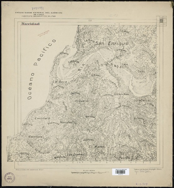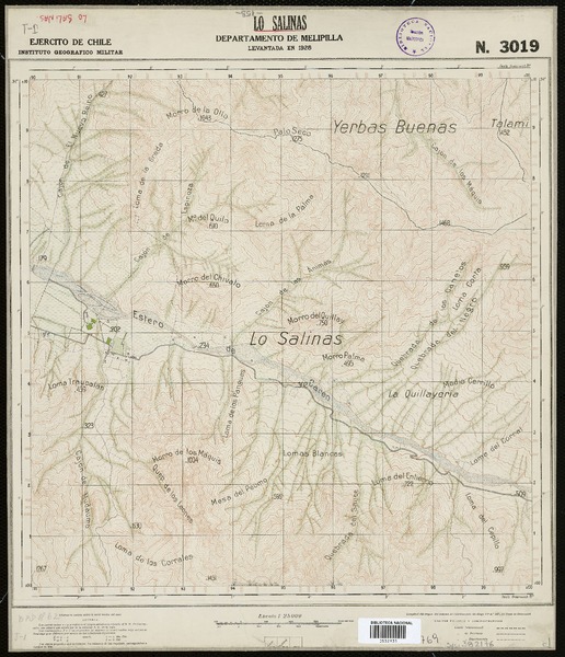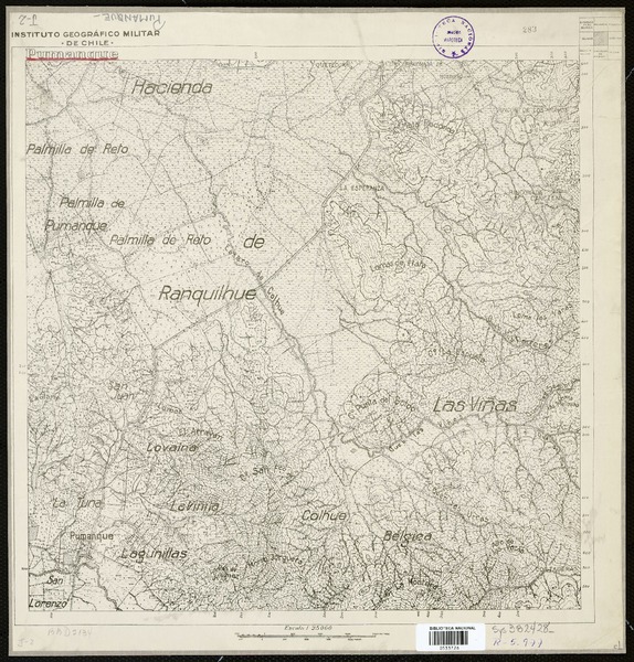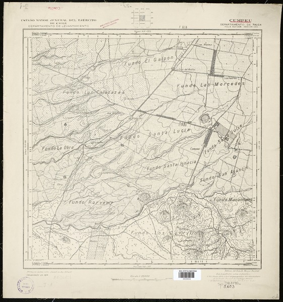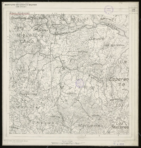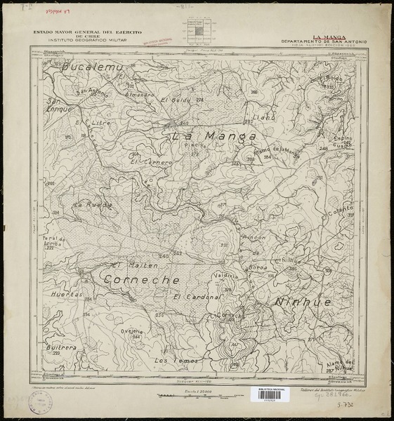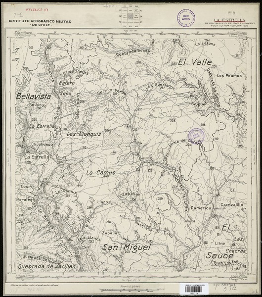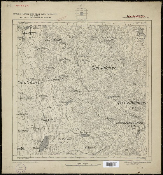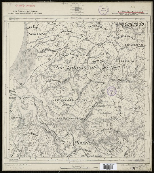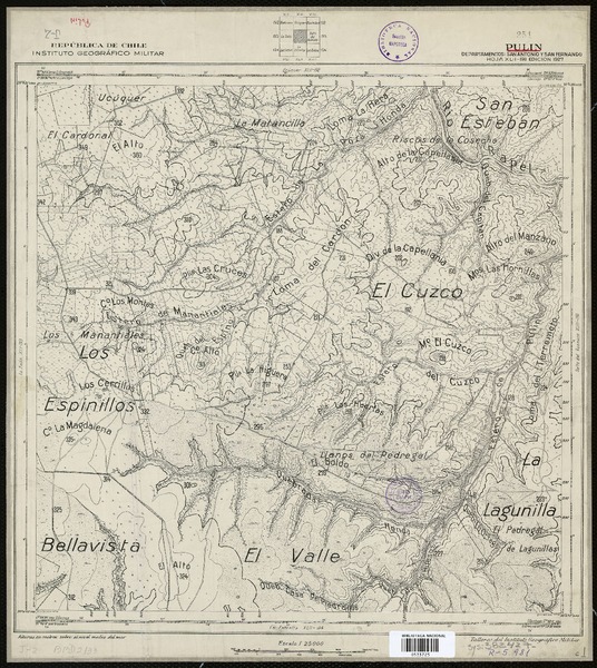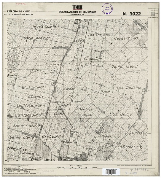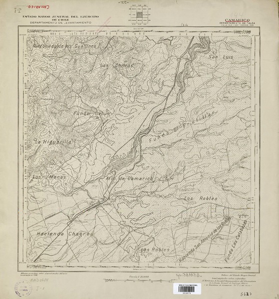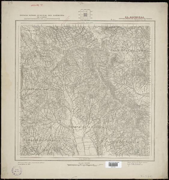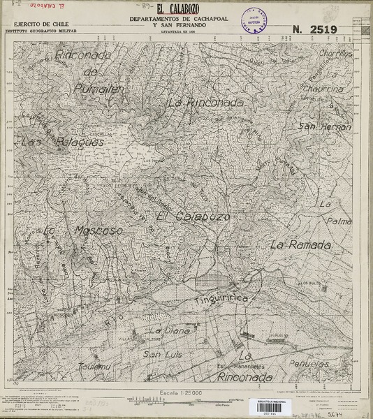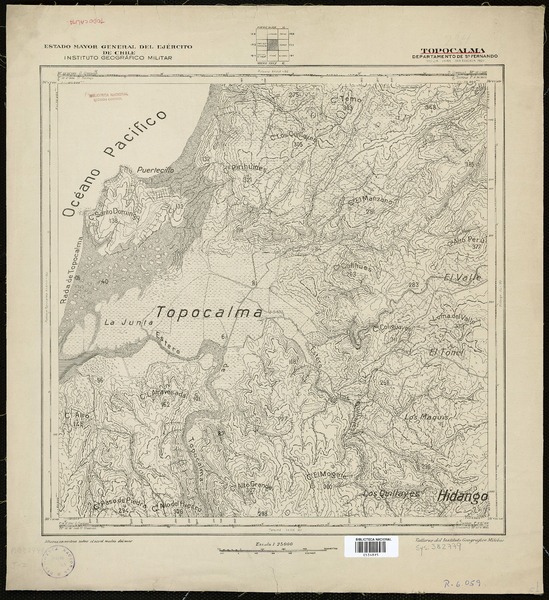 Topocalma Departamento de San Fernando [material cartográfico] : Estado Mayor General del Ejército de Chile, Instituto Geográfico Militar.