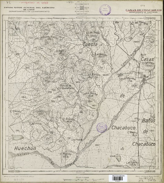 Casas de Chacabuco Departamento de Santiago [material cartográfico] : Estado Mayor Jeneral del Ejército de Chile, Departamento de Levantamiento.