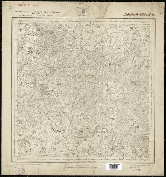 Cobre de Chacabuco Departamentos de Santiago y Los Andes [material cartográfico] : Estado Mayor Jeneral del Ejército de Chile, Departamento de Levantamiento.
