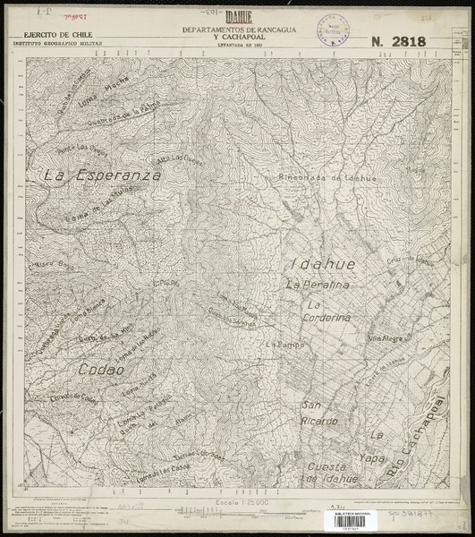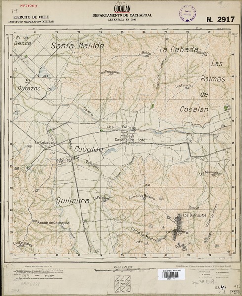 Cocalán Departamento de Cachapoal [material cartográfico] : Ejército de Chile, Instituto Geográfico Militar.
