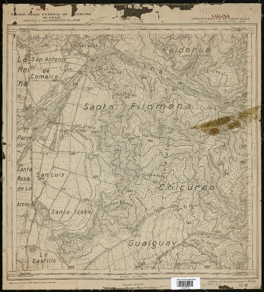 Colina Departamento de Santiago [material cartográfico] : Estado Mayor General del Ejército de Chile, Instituto Geográfico Militar.