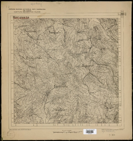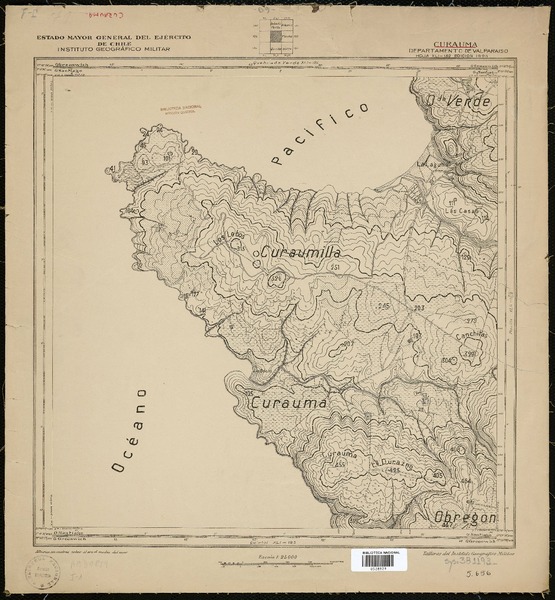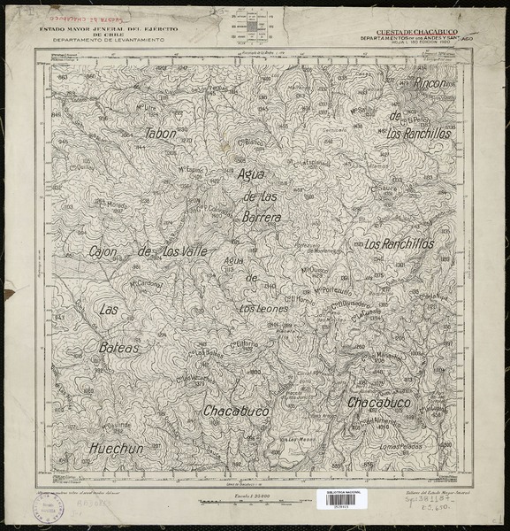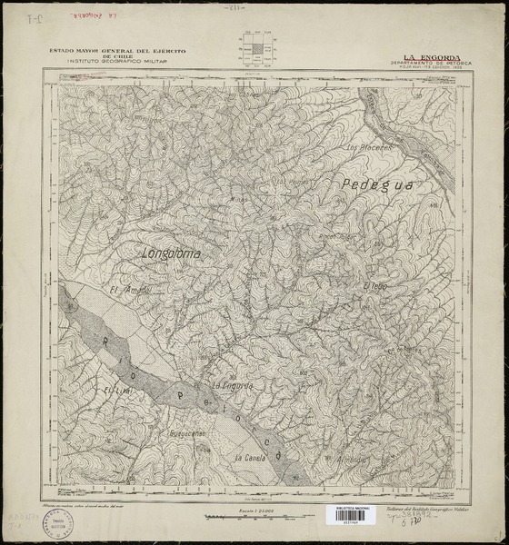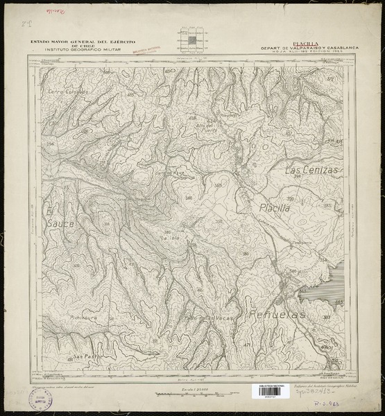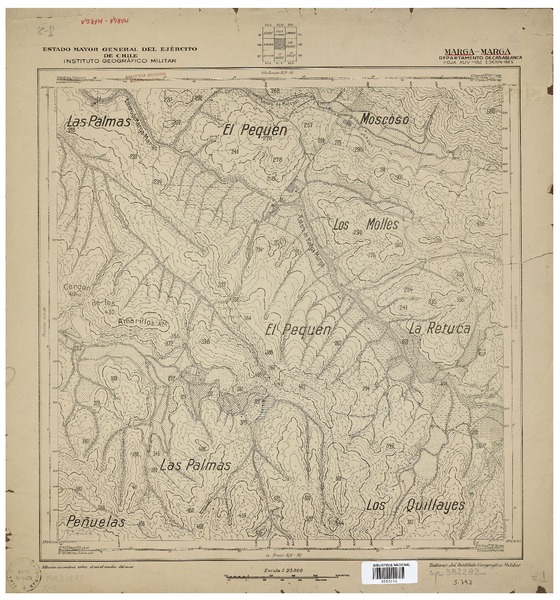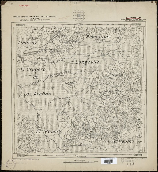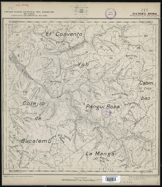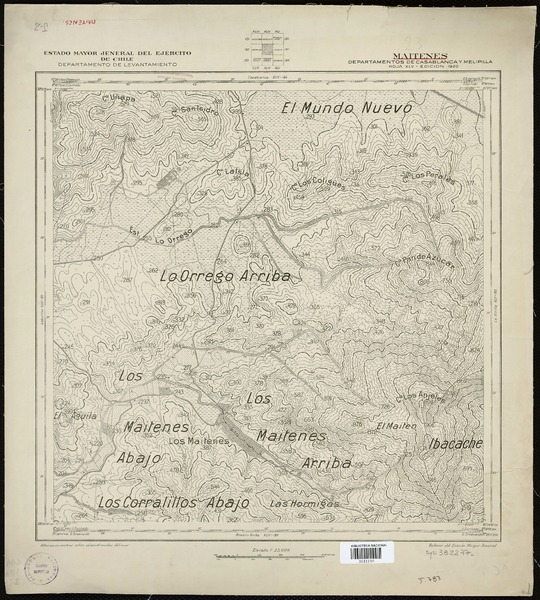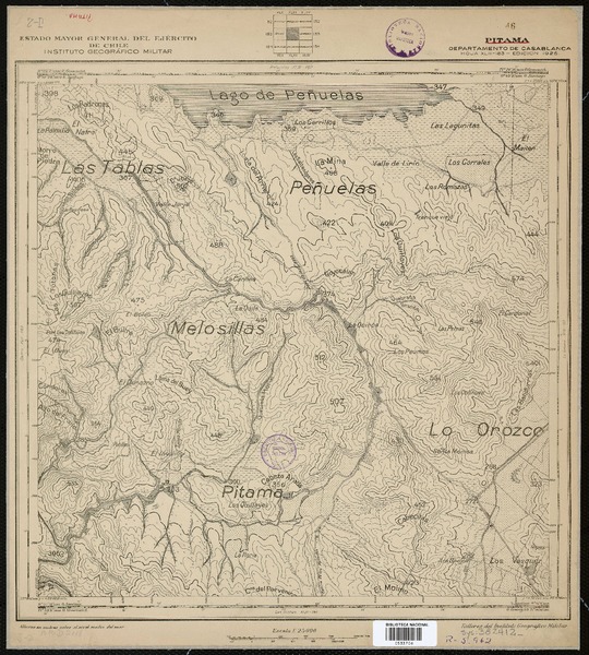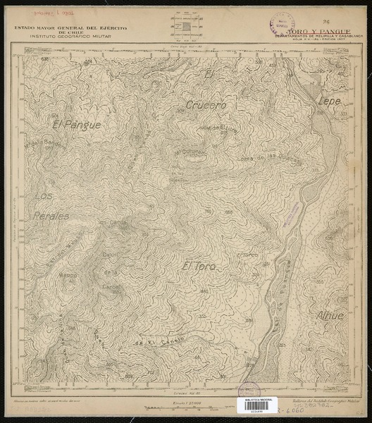Toro y Pangue Departamentos de Melipilla y Casablanca [material cartográfico] : Estado Mayor General del Ejército de Chile, Instituto Geográfico Militar.
