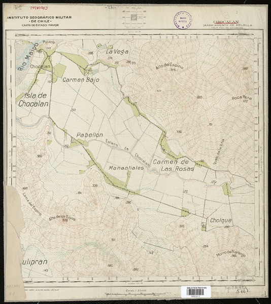 Chocalán Departamento de Melipilla [material cartográfico] : Instituto Geográfico Militar de Chile, Carta de Estado Mayor.