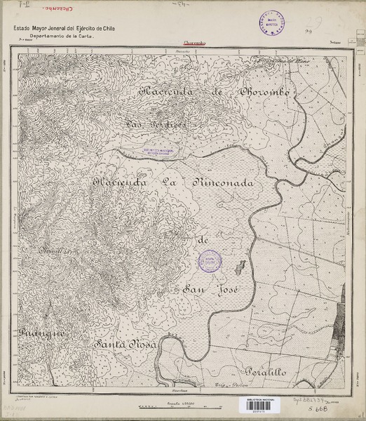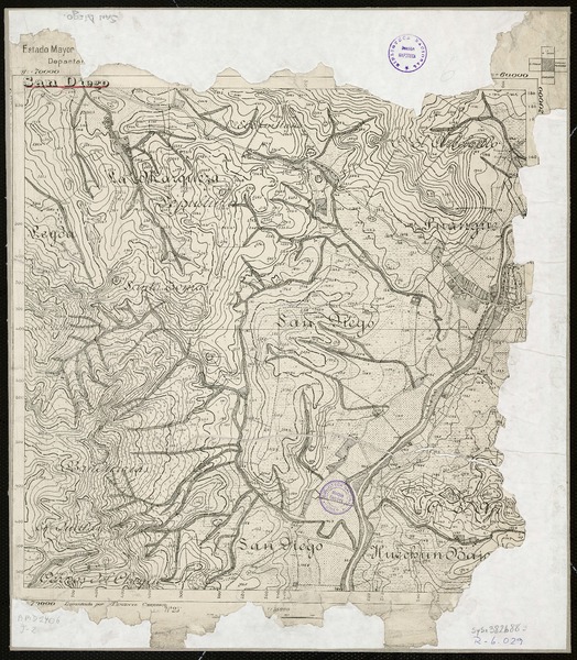 San Diego [material cartográfico] Estado Mayor [Jeneral del Ejército de Chile], Departamento [de la Carta] ; levantado por Teniente Carrasco.