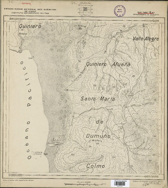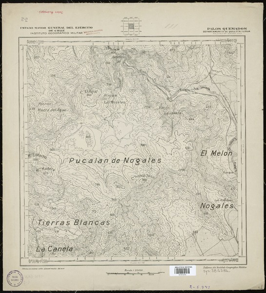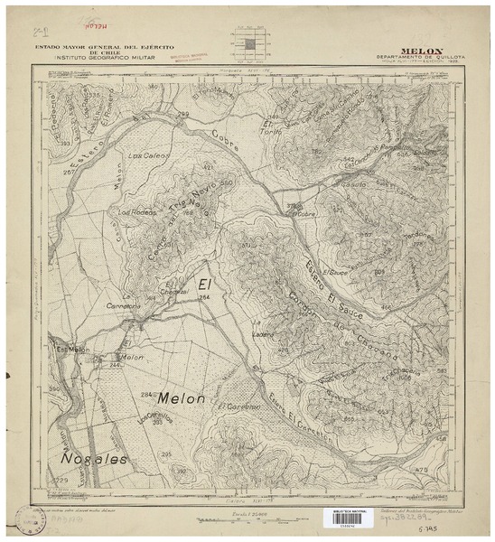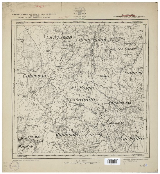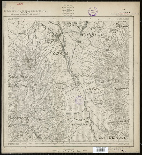 Catapilco Departamentos de Quillota i Ligua [material cartográfico] : Estado Mayor General del Ejército de Chile, Instituto Geográfico Militar.