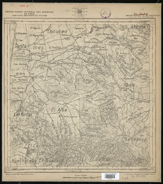 Santiago N. [material cartográfico] Estado Mayor General del Ejército de Chile, Instituto Geográfico Militar.