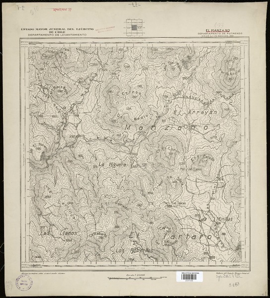 San Manuel Departamento de Melipilla [material cartográfico] : Instituto Geográfico Militar de Chile, Carta de Estado Mayor.