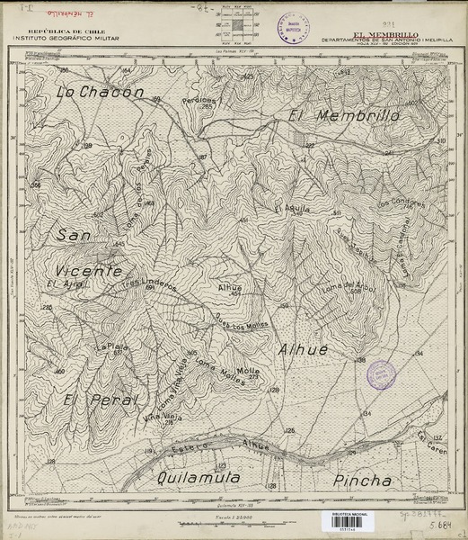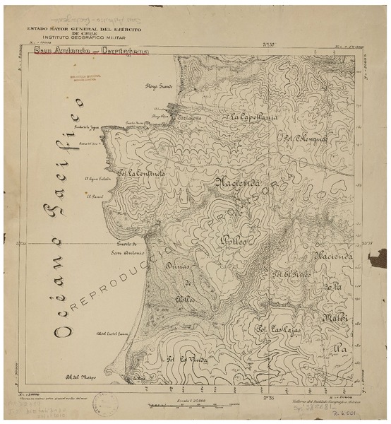 San Vicente Departamento de San Antonio y Melipilla [material cartográfico] : Estado Mayor General del Ejército de Chile, Instituto Geográfico Militar.