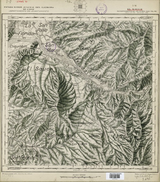 San Felipe Departamento de San Felipe [material cartográfico] : Estado Mayor Jeneral del Ejército de Chile, Departamento de Levantamiento.