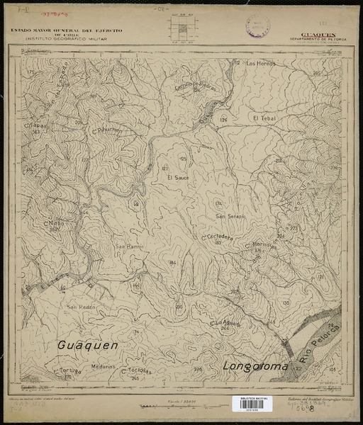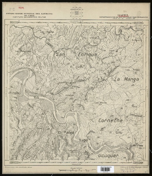 Ucúquer Departamentos de San Antonio y San Fernando [material cartográfico] : Estado Mayor General del Ejército de Chile, Instituto Geográfico Militar.