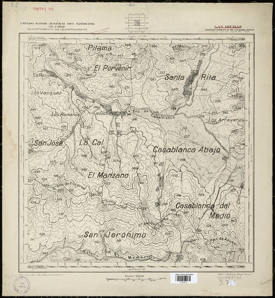 Casablanca Departamento de Casablanca [material cartográfico] : Estado Mayor Jeneral del Ejército de Chile, Departamento de Levantamiento.