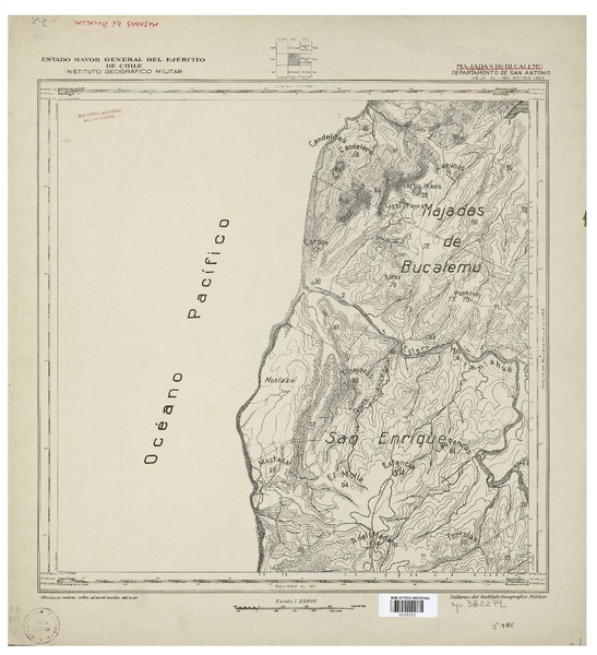 Colejio de Bucalemu Departamento de Sn Antonio [material cartográfico] : Estado Mayor General del Ejército de Chile, Instituto Geográfico Militar.