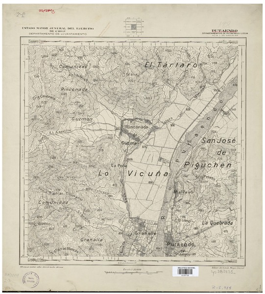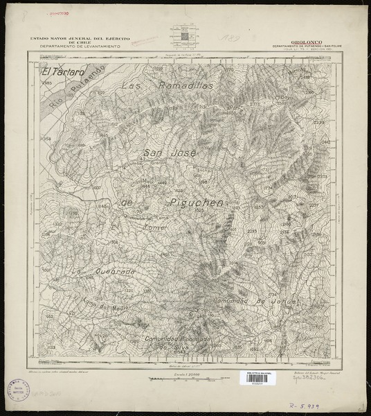 Chorrillo Departamento de Putaendo [material cartográfico] : Estado Mayor Jeneral del Ejército de Chile, Departamento de Levantamiento.