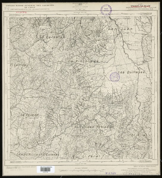 San Pedro Departamento de Quillota y Limache [material cartográfico] : Estado Mayor Jeneral del Ejército de Chile, Departamento de Levantamiento.